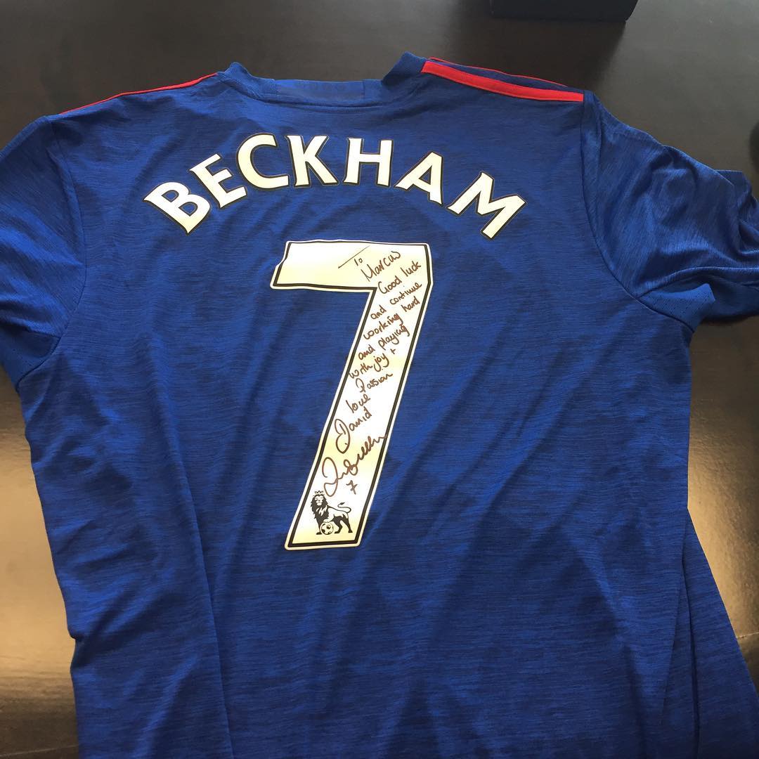 Легендарный экс-полузащитник «Манчестер Юнайтед» и сборной Англии Дэвид Бэкхем отправил юному форварду манкунианцев и «львов» Маркусу Рашфорду свою игровую футболку с пожеланиями и автографом. Среди прочего Бекхэм пожелал Рашфорду удачи и попросил 18-летнего футболиста «продолжать играть с удовольствием и страстью».