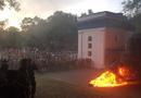 Участники митинга в центре Киева подожгли шины у стадиона "Динамо".