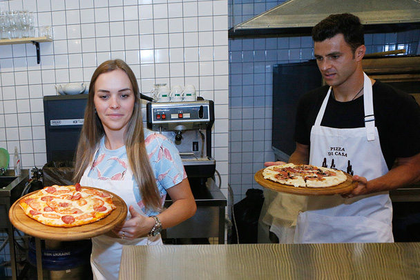 В одном из заведений сети, расположенном в самом центре Киева, по улице Пушкинская, 24, по предложению Фан-клуба «Динамо» Киев в кулинарном мастерстве поупражнялись нападающий команды Жуниор Мораэс вместе с супругой Присцилой. Они самостоятельно приготовили пиццу!