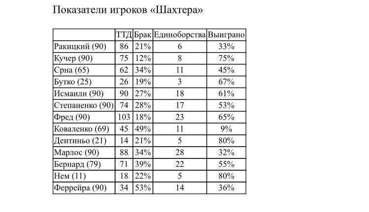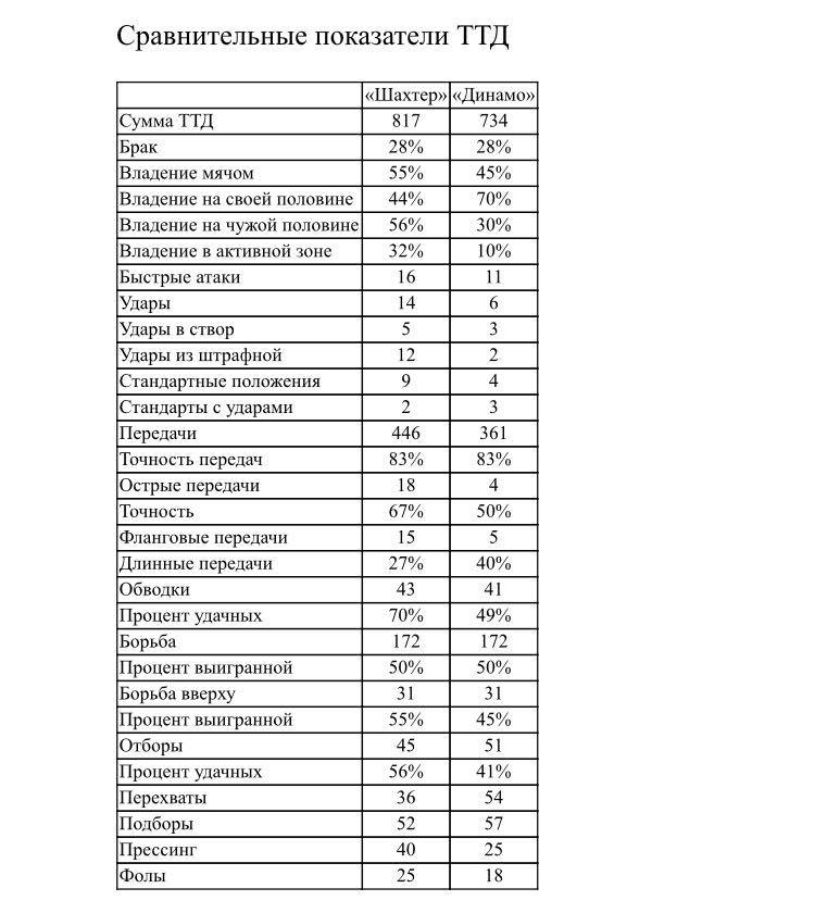 "Шахтер" - "Динамо" 1:1: Расшифровка ТТД
