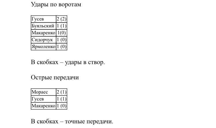 В принципе, то что было видно невооруженным глазом, подтвердилось. Землеройки были острее и быстрее.По такой игре центральные полузащитники(которые в атаке замечены не были) должны выигрывать хотя бы борьбу, уменьшая таким образом владение соперника, успокаивая темп игры, и соответственно делая ситуацию у своих ворот более безопасной.
