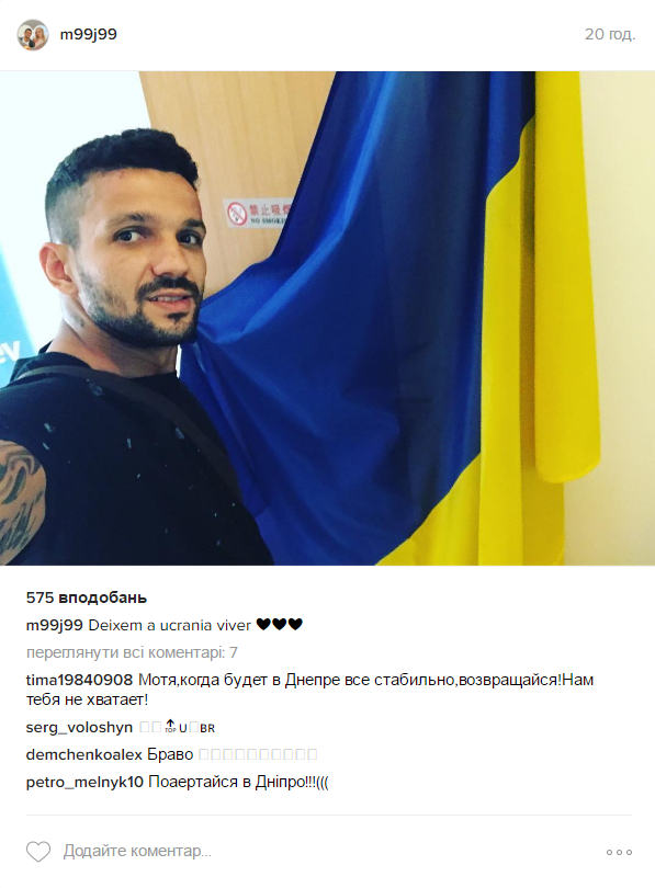 Бразилец опубликовал в Instagram фото с флагом Украины и подписал его: "Да здравствует Украина".