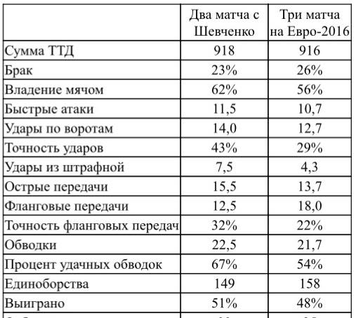 Впрочем, у Андрея Шевченко было своё мнение на этот счёт. В бей - беги он играть и не думает, и это, конечно, похвально. Для того чтобы понять всю суть нашего нового футбола и его эффективность (пока часовую, но верю, что со временем, когда появятся продуктивные замены, она перейдёт в полутора часовую), достаточно сказать, что из пределов штрафной площади за один матч мы нанесли столько ударов, сколько за весь чемпионат Европы, а такое количество острых передач в последний раз было зафиксировано в поединке с Македонией. Год назад. Но где Македония, а где Турция...