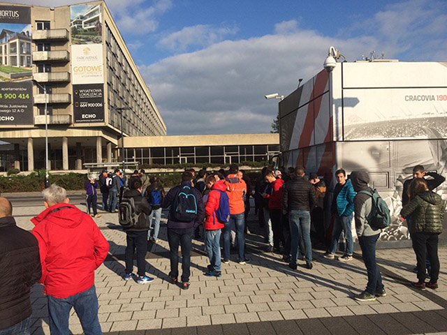 Возле касс стадиона "Краковия" собралось около 120 человек. Большинство из них – украинцы, приехавшие в Краков, чтобы попасть на футбол. Они надеются ещё купить билеты каким-то образом. Составили даже список людей в очереди, чтобы всё было справедливо, если билеты появятся в продаже.