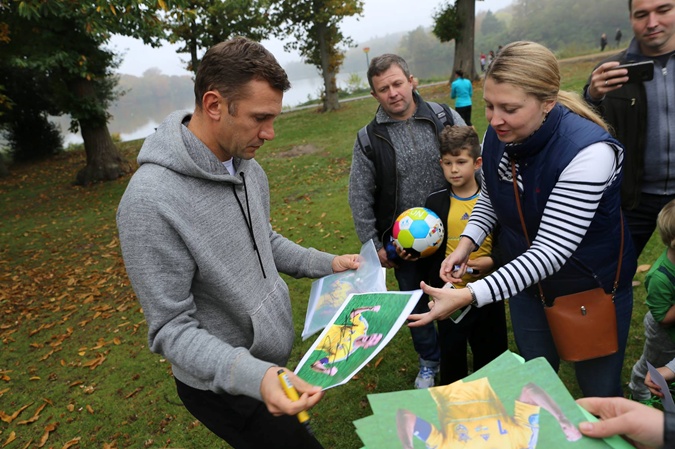 Главный тренер сборной Украины Андрей Шевченко в Лондоне встретился с представителями британского отделения организации Пласт, которая объединяет миллионы украинцев в Великобритании и по всему миру, а также с представителями украинской диаспоры на Туманном Альбионе. На встречу с Шевченко съехались жители нескольких городов, в частности Лондона, Манчестера, Йорка и Братфорда. 40-летний экс-футболист провел развлекательные мастер-классы и разогрев для юных футболистов, а также передал диаспорянам футбольную майку в национальных цветах и надписью Шевченко, как воплощение образа большой "команды Украины".