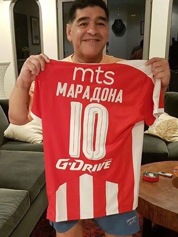 На фотографии 56-летний Марадона держит в руках клубную футболку сербского клуба, на которую нанесены его фамилия и 10-й номер.