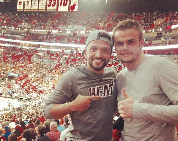 Голкипер "Динамо" Максим Коваль вместе с бывшим хавбеком "Металлиста" Эдмаром побывали на баскетбольном матче НБА "Майами Хит".