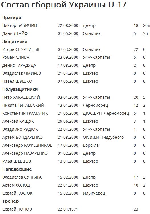 Юношеская сборная Украины, составленная из футболистов 2000 года рождения, начала подготовку к традиционному Кубку развития, который пройдет 15—22 января в Беларуси. Главный тренер сборной U-17 Сергей Попов, как и его коллега Олег Кузнецов (сборная U-16), будет обходиться без представителей одной из сильнейших команд страны этой возрастной категории — Динамо.