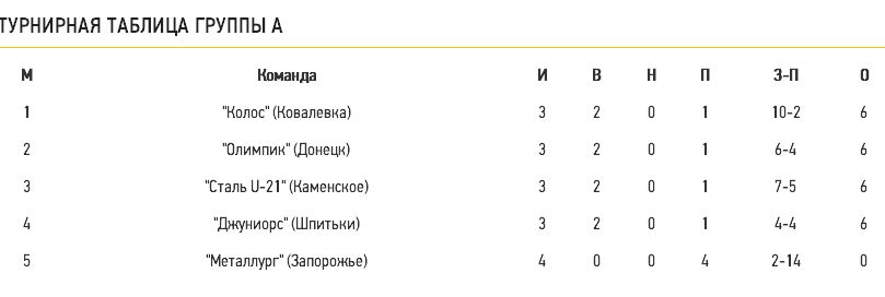 Удивительно, но факт: позади остались четыре тура группового этапа Мемориала Макарова, а еще ни одна команда не гарантировала себе место в четвертьфинале турнира. Все решится в последнем туре! Наиболее запутанная ситуация в группе А, где на выход в следующий раунд в равной степени претендуют четыре команды. На данный момент донецкий «Олимпик», «Колос» (Ковалевка), «Джуниорс» (Шпитьки) и молодежная команда «Стали» (U-21) имеют в своем активе по шесть очков. Подопечные Егише Меликяна, к слову, стали творцом главной сенсации сегодняшнего игрового дня – «сталевары» со счетом 2:1 переиграли «Олимпик».