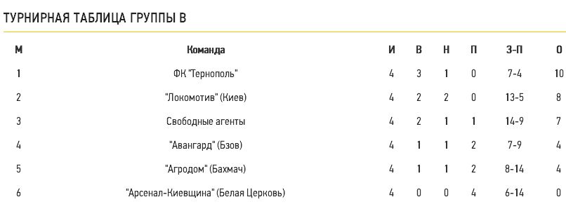 В последнем туре «Тернополь» сыграет с «Локомотивом», который в отчетном туре довольствовался ничьей со сборной свободных агентов – 2:2. «Железнодорожники» выглядели сильнее, но умудрились не реализовать сразу два 11-метровых штрафных удара! Отметим, что вновь отличились "свободные" нападающие Ярослав Сокол и Юрий Перин, в активе которых теперь, как и у Романа Гусака, четыре забитых мяча. Завершил программу игрового дня матч «Агродома» и «Арсенал-Киевщины». Первый тайм этой встречи завершился вничью 1:1, тогда как в начале второго «канониры» быстро пропустили два мяча от Михайленко, которые, сообственно, и предопределили исход встречи - 2:4.