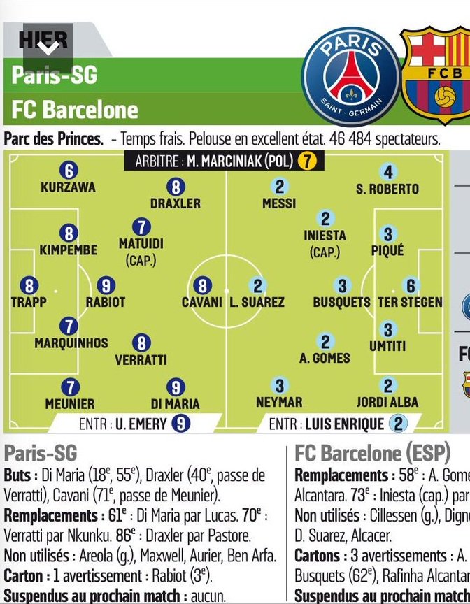 Французское издание L’Equipe крайне низко оценила игру лидеров "Барселоны" Лионеля Месси и Луиса Суареса в первом матче 1/8 финала Лиги чемпионов против ПСЖ (0:4).