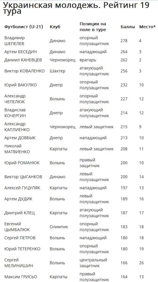 Учитывая, что из нашего поля зрения выпала большая группа уже достаточно опытных футболистов, первые весенние показатели молодежи прогнозировано снизились. В топ-10 статистических рейтингов аналитической компании InStat Football, помимо Шепелева, вошли еще лишь пять игроков.