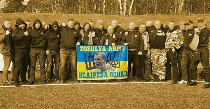 Литовський ФК "Атлантас Клайпеда" з банером в підтримку Романа Зозулі