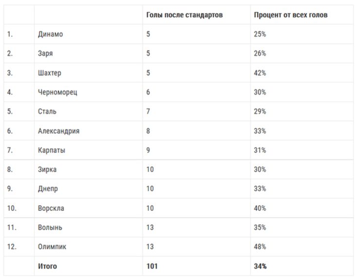 У «Зари» в этом году три гола – и все после домашних заготовок. Благодаря стандартам все свои весенние очки заработал «Черноморец». Результативный удар со штрафного принес в последнем туре победу «Карпатам», а «Динамо» реализовало угловой в компенсированное время поединка с «Олимпиком». Киевляне после угловых, штрафных и пенальти провели в текущем чемпионате уже 16 мячей. У моряков, к слову, в этом первенстве всего столько голов, а «Сталь» и «Волынь» забили и того меньше...