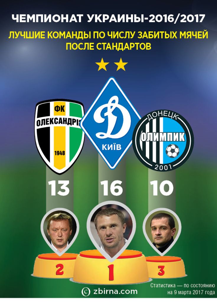 «Динамо» после стандартов не только больше всех забивает, но и меньше всех пропускает. Наряду с «Зарей» и «Шахтером». Самые же большие проблемы с этим компонентом игры испытывают «Волынь» и «Олимпик», который по мячам, забитым в результате стандартных положений, входит в тройку лучших команд УПЛ. Получается, что в матчах с участием подопечных Романа Санжара в текущем чемпионате после стандартов забито уже 23 мяча.
