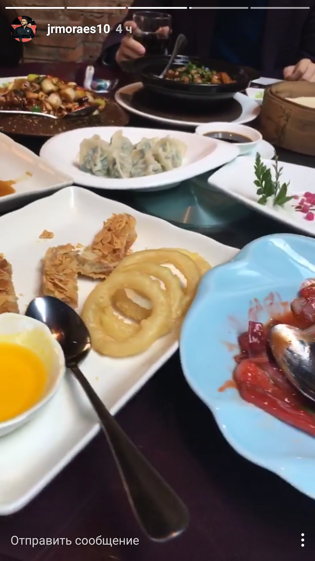 Нападающий "Динамо" Жуниор Мораес, выступающий за "Тяньцзинь Цюаньцзянь" на правах аренды в своем Instagram поделился фото китайских блюд.
