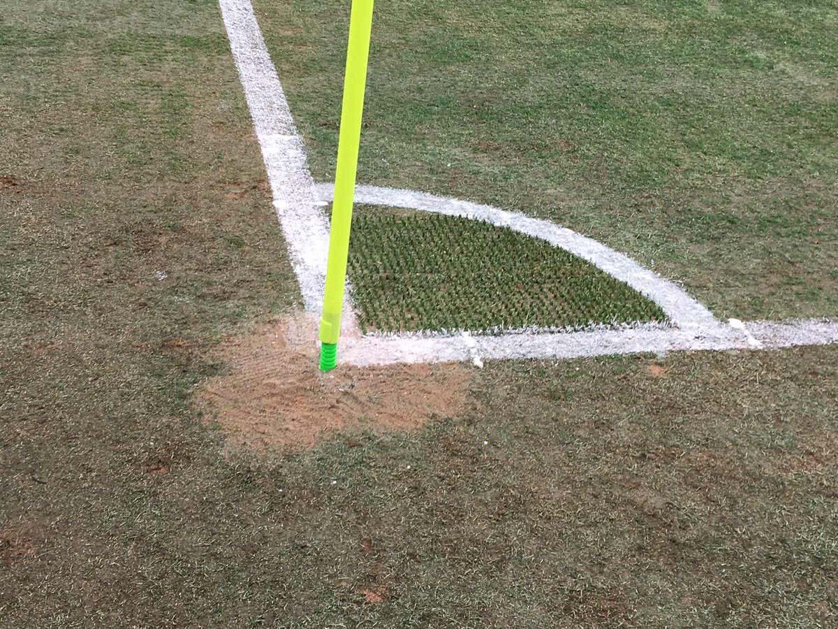 Однако кадры из многомиллионного стадиона просто шокировали. У одного из угловых флажков проблемный участок газона просто заменили куском искусственного покрытия, которое очень напоминает коврик перед дверью.