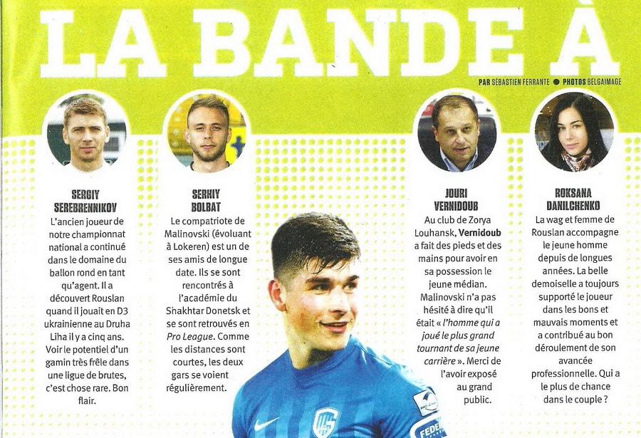 Руслан Малиновский своей незаурядной игрой заставляет бельгийских журналистов искать о нем новую информацию. Так свежий номер популярного бельгийского еженедельника SPORT FOOT MAGAZINE на сей раз представил ближайшее окружение Руслана, благодаря которому местная публика смогла познакомиться и по достоинству оценить футбольный талант украинца, пишет zbirna.com