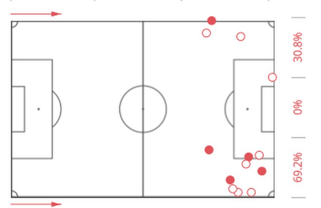Для наглядности рассмотрим его действия в матче с «Монако». Первое, что стоит отметить, – это карта передач.