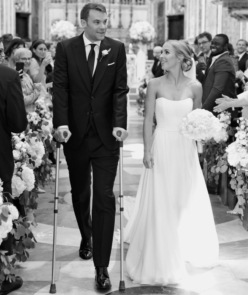 Мануэль Нойер не успел восстановиться от перелома стопы, поэтому во время свадьбы передвигался на костылях.