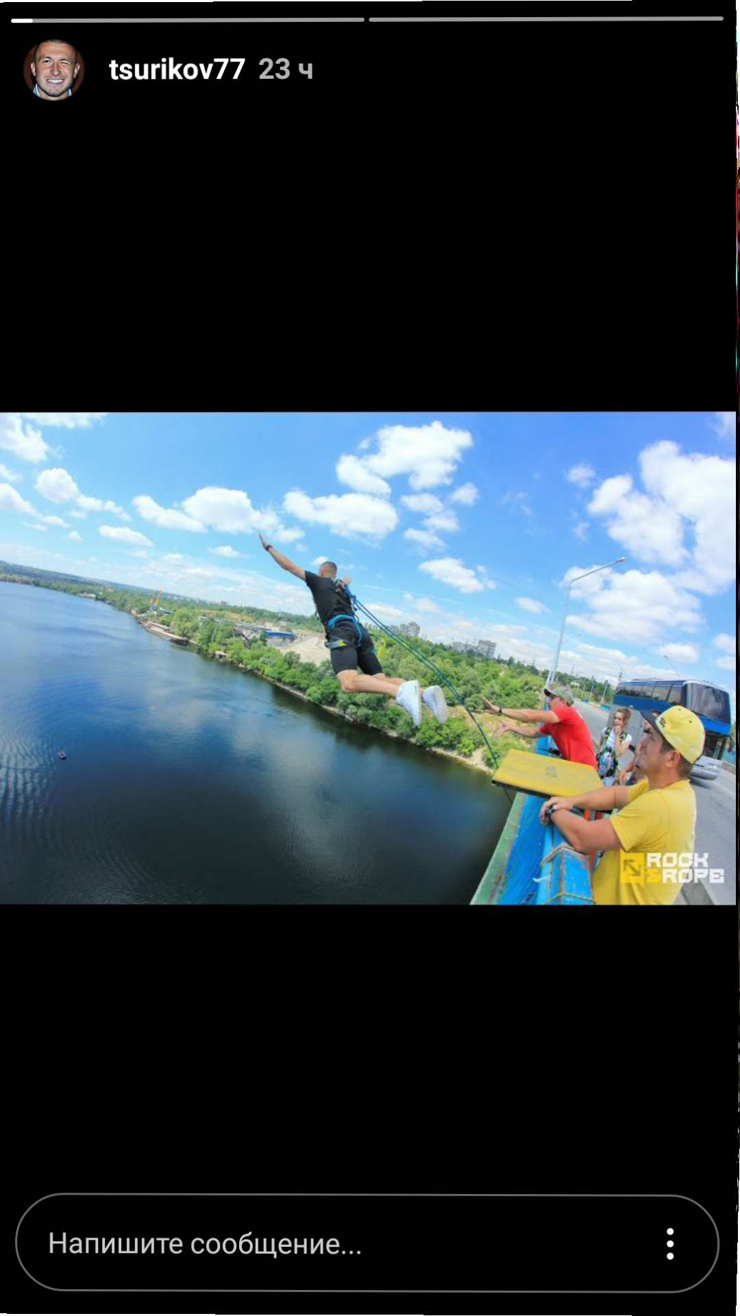 Бывших защитник "Динамо" Андрей Цурикову прыгнул с моста на троссе.