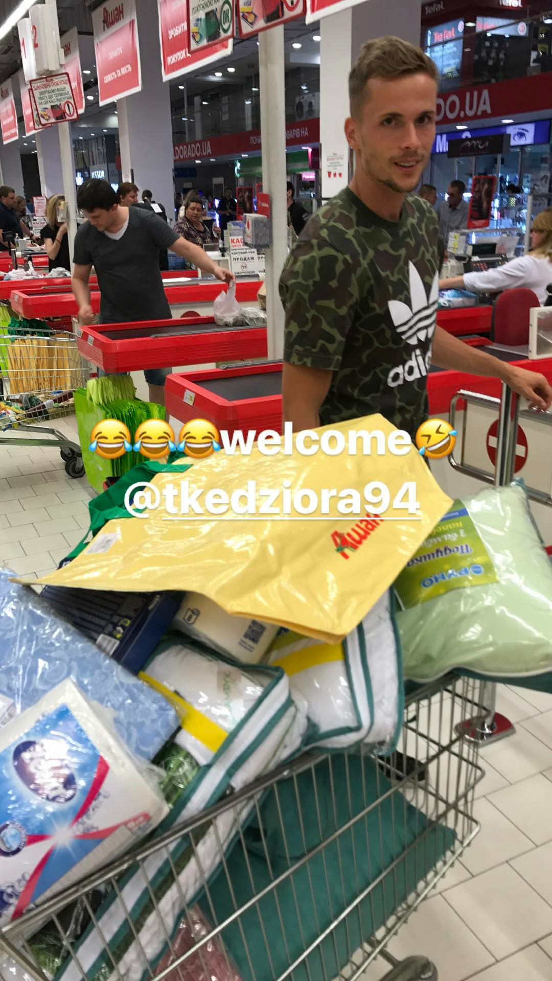 Защитник "Динамо" Томаш Кензера скупился в киевском гиперамаркете "Ашан". Помог новичку "Динамо" его бывший одноклубник по "Леху" Тамаш Кадар.