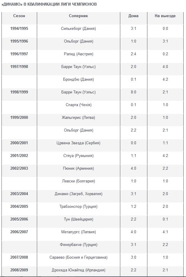 19-й старт "Динамо" в квалификации Лиги чемпионов УЕФА