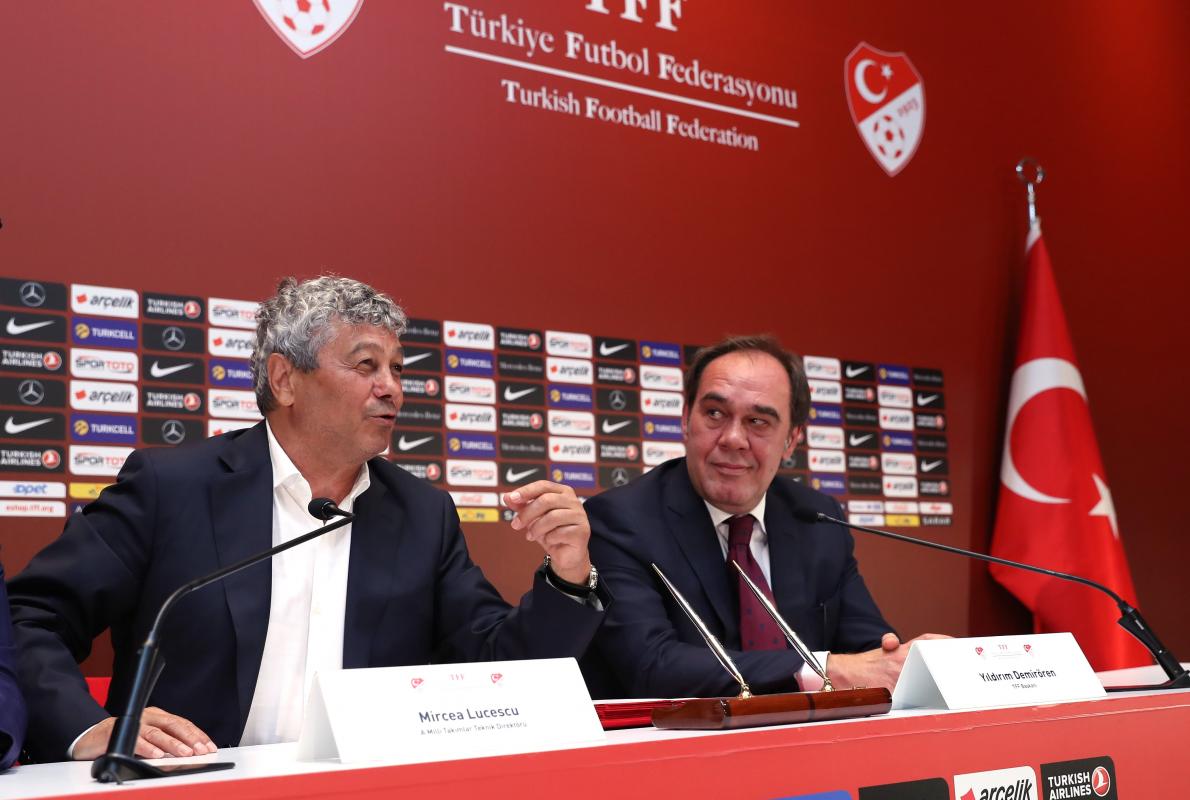 Сегодня на тренировочной базе турецкой сборной имени Хасана Догана президент ТФФ Йылдырым Демиронен официально представил Мирчу Луческу в качестве главного тренера сборной Турции. Как и ожидалось, контракт со специалистом подписан по системе 2+1. После небольшого официоза, состоялась короткая пресс-конференция наставника и президента.