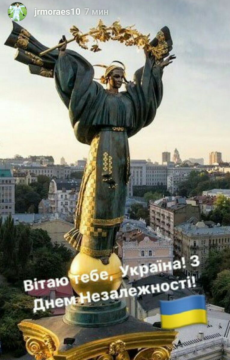 Бразильский нападающий «Динамо» Жуниор Мораес поздравил Украину и всех украинцев с Днем Независимости.