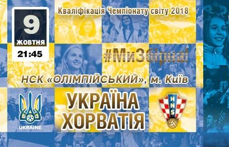 Вболівальники, які 9 жовтня збираються відвідати кваліфікаційний матч ЧС-2018 між національними збірними командами України та Хорватії, мають можливість придбати квитки у касі на Спортивній площі, 1 та в касі НСК «Олімпійський» на Троїцькій площі.