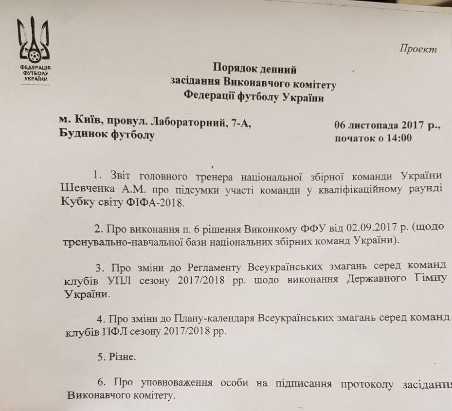 Стала известна повестка дня Исполкома ФФУ, которая состоит из шести пунктов.