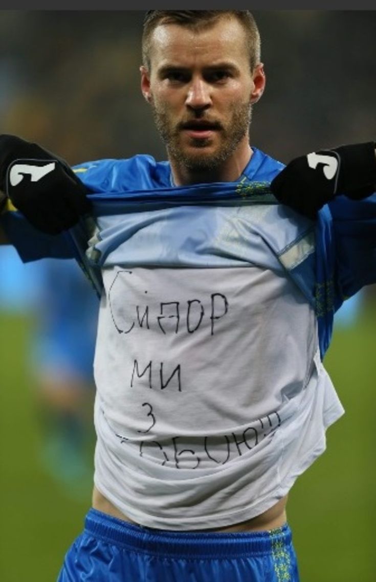 Полузащитник сборной Украины Андрей Ярмоленко, сравняв счет на 39-й минуте спарринга против Словакии, сделал жест в поддержку травмированного экс-партнера Сергея Сидорчука. Лидер сине-желтых поднял футболку и продемонстрировал на термобелье надпись «Сидор, ми з тобою».
