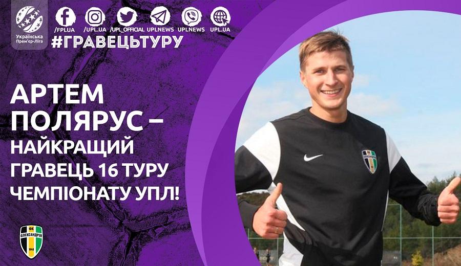 Артем Полярус - лучший игрок 16-го тура Премьер-лиги