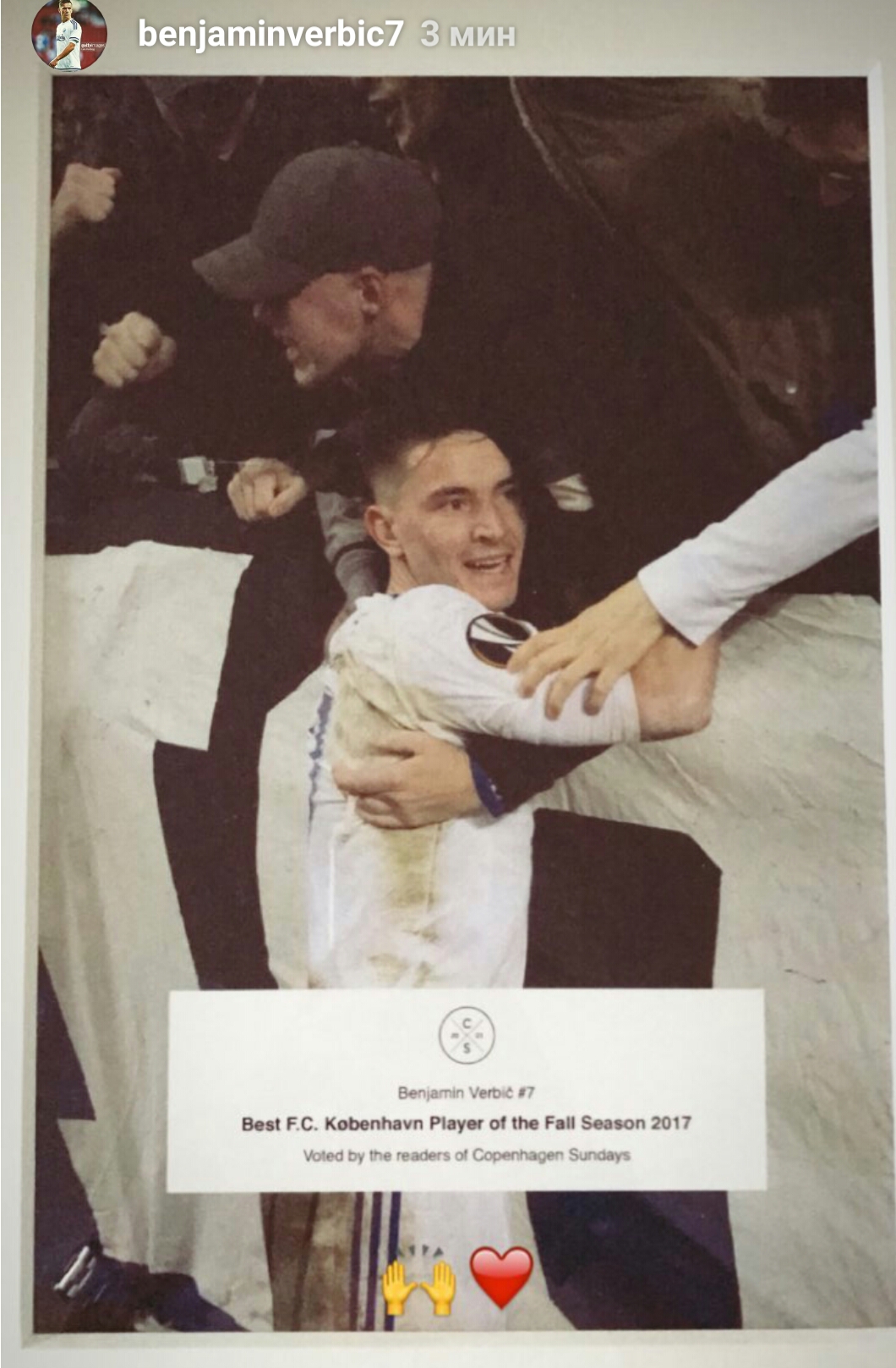 Новичок "Динамо" Беньямин Вербич в своем Instagram вспомнил, как его признавали лучшим игроком "Копенгагена".