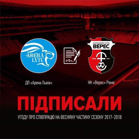 ДП "Арена Львів" та НК "Верес" підписали угоду про співпрацю на весняну частину сезону 2017/2018.