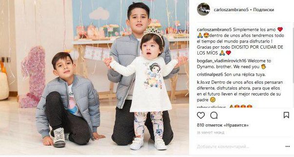 Защитник "Динамо" Карлос Самбрано в своем Instagram поделился фото своих трех детей.
