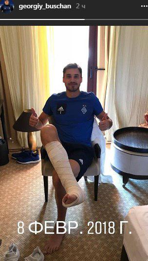 Голкипер "Динамо" Георгий Бущан, получивший серьезную травму, выложил в своем Instagram фото с загипсованной ногой.