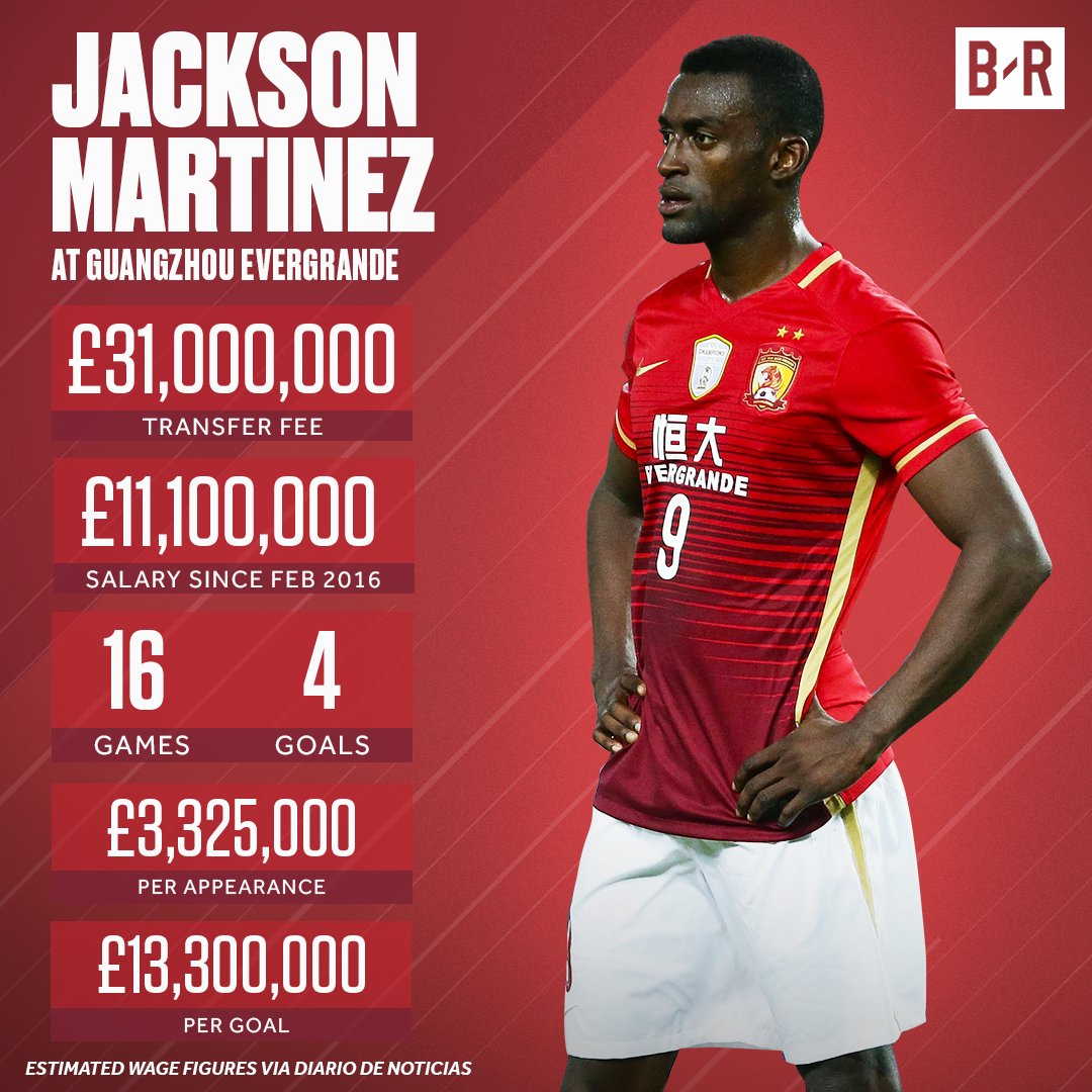 В феврале 2016 года "Атлетико" продал колумбийца в "Гуанчжоу Эвергранд" за 31 миллион фунтов (порядка 42 миллионов евро). С тех пор Мартинес, получая сумасшедшую зарплату (11,1 миллиона фунтов) провёл за китайский клуб 16 игр и забил 4 гола.