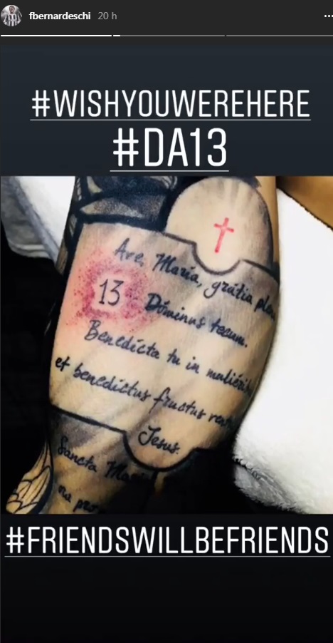 Полузащитник «Ювентуса» Федерико Бернардески посвятил татуировку скончавшемуся капитану «Фиорентины» Давиде Астори.