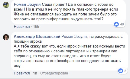 А я тебе скажу вот что, если игрок считает возможным вести себя по отношению к своим партнёрам и к тренерам как засранец, то ему стоит ожидать, что в ответ будут вести зеркально, - ответил Шовковский.