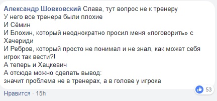 А отсюда можно сделать вывод: значит проблема не в тренерах, а в голове у игрока, - написал Шовковский на своей странице в Фейсбуке.