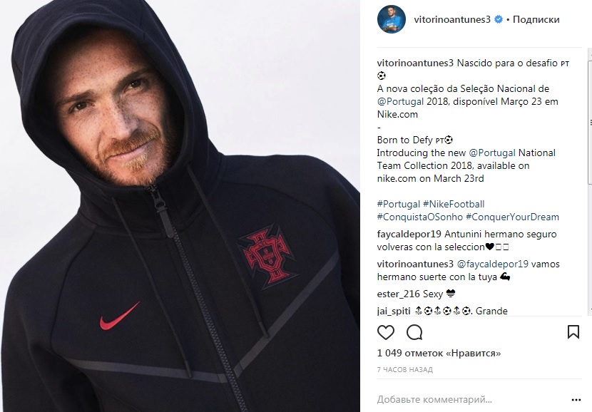 Защитник «Динамо» Виторину Антунеш, выступающий на правах аренды за «Хетафе», поучаствовал в представлении новой экипировки национальной сборной Португалии.