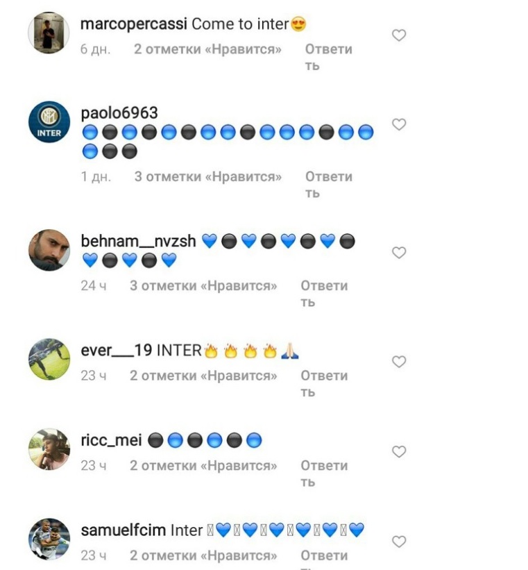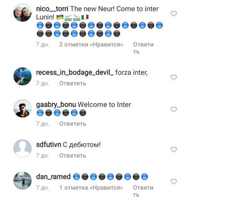 Фанаты Интера быстро нашли Андрея Лунина в соцсети Инстаграм и засыпали его сообщениями.