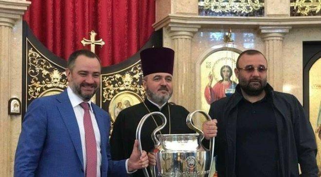 Блогер и известный волонтер Роман Синицын в своем Facеbook рассказал, кто находится рядом с президентом ФФУ Андреем Павелко на фото с кубком Лиги чемпионов в церкви.