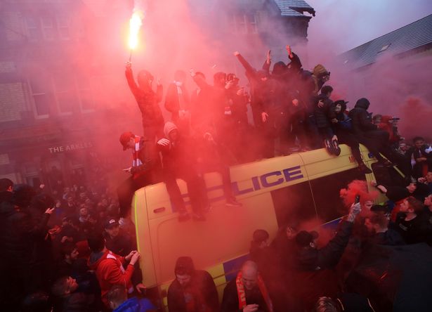 Как сообщает mirror.co.uk, фанаты "Ливерпуля" забрались на полицейскую машину, чтобы поприветствовать свою команду перед матчем 1/2 финала Лиги чемпионов с "Ромой".