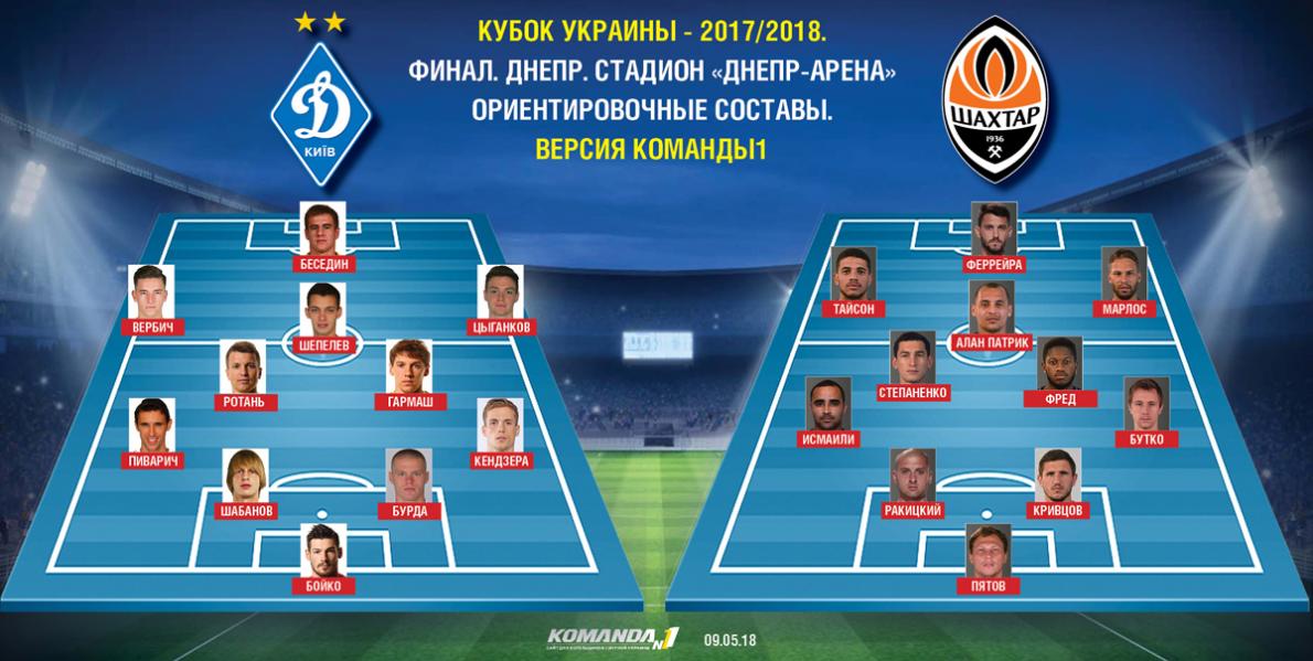 Шапаренко и Коваленко - на скамейке запасных. Составы на финал Кубка Украины от "Команды№1"