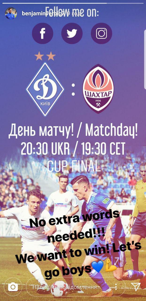 Полузащитник "Динамо" Беньямин Вербич решительно настроен на финал Кубка Украины против "Шахтера".
