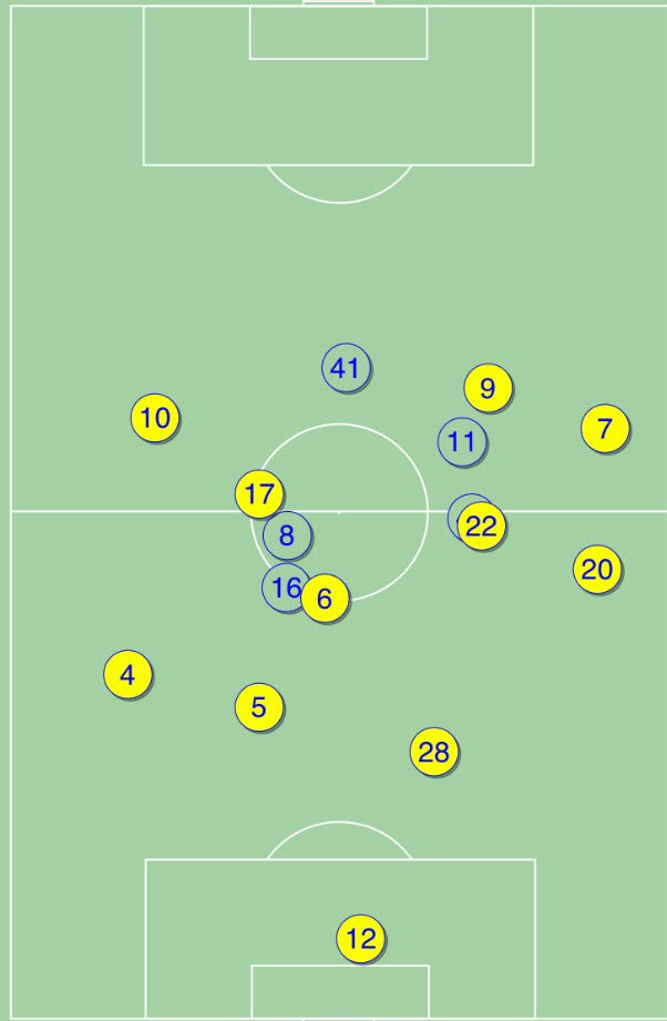 Усредненные позиции игроков сборной Украины в матче с Марокко
