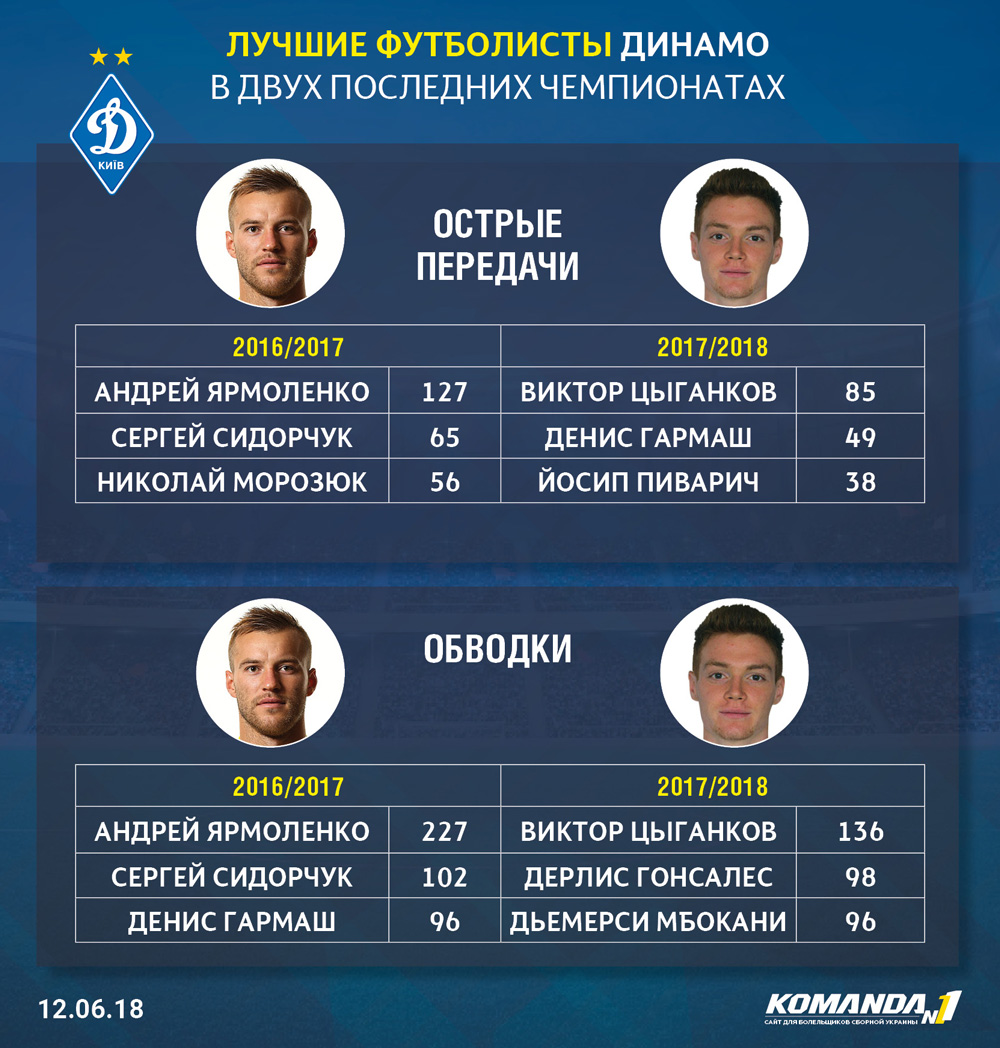 Нельзя пройти стороной и индивидуальные достижения футболистов. Мы сознательно остановились только на атакующих показателях, которые четко показывают, кто был лидером у Динамо в двух предыдущих сезонах. И этих лидеров можно тоже сравнить.