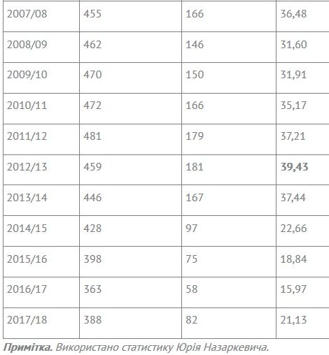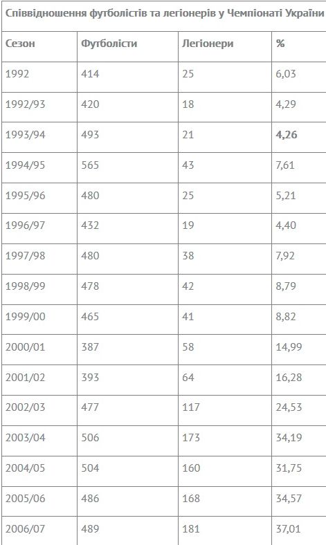 У сезону 2017/18 років із загальної кількості футболістів 21,13% мали зарубіжні паспорти